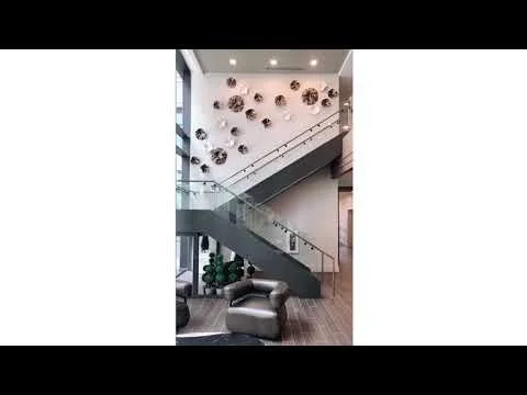 As the viewer traverses the stairs, the work captures the reflection of color and light, creating the illusion of movement.